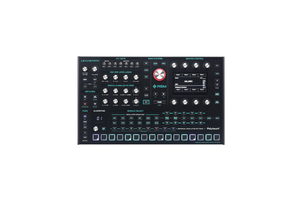 Leviasynth Desktopは、ASMの新しいハイブリッド・アルゴリズミック・シンセサイザーです。16ボイス、各ボイス8基のオシレーター、そしてアナログとデジタルのフィルターを組み合わせたLeviasynthは、まさにサウンドデザイナーにとって夢のようなシンセサイザーです。